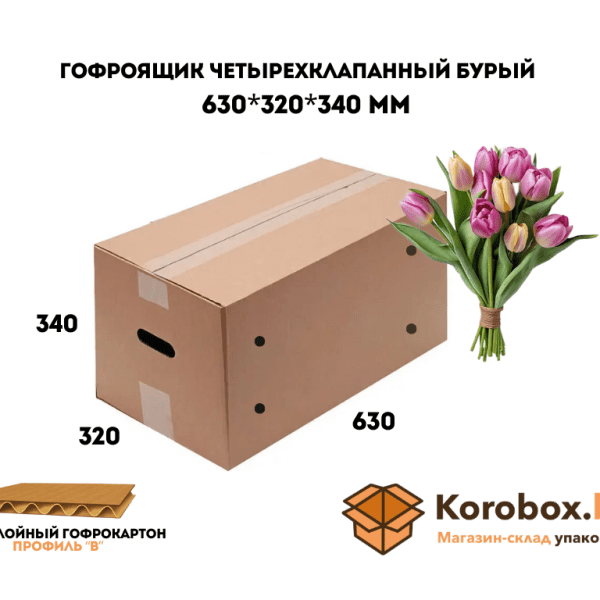 Гофроящик четырехклапанный 630*320*340 мм трехслойный
