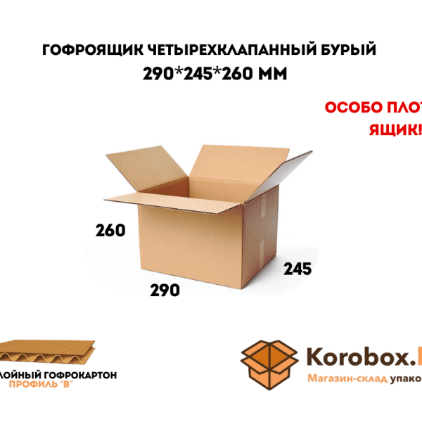 Гофроящик четырехклапанный 290*245*260 мм трехслойный